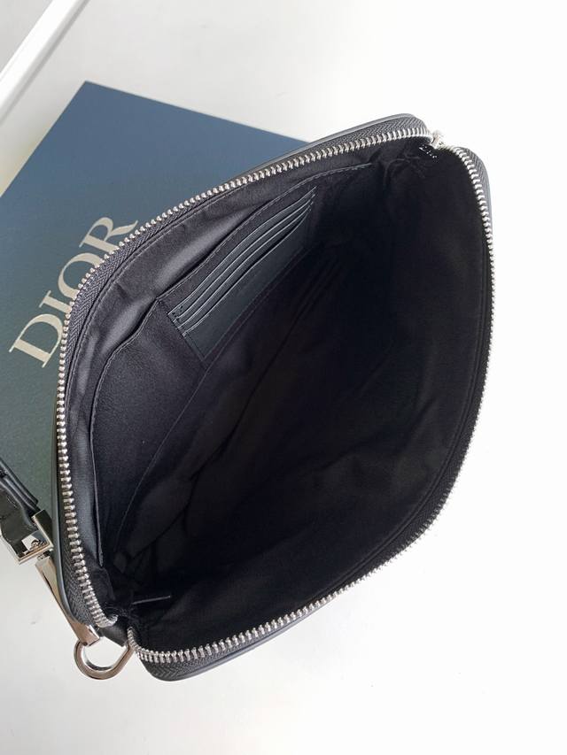 配盒子+蜜蜂 这款手拿包实用而高雅,内部空间宽敞,可收纳各种日常用品。采用别致的黑色 Oblique Galaxy 印花效果皮革制作,打造 Oblique 印花效果,彰显 Dio 的精湛工艺。金属覆层黄铜拉链开合,内部设有三个卡槽和一个可收纳手机的隔层。搭配可拆卸的皮革带,可手拿或放入手袋中。