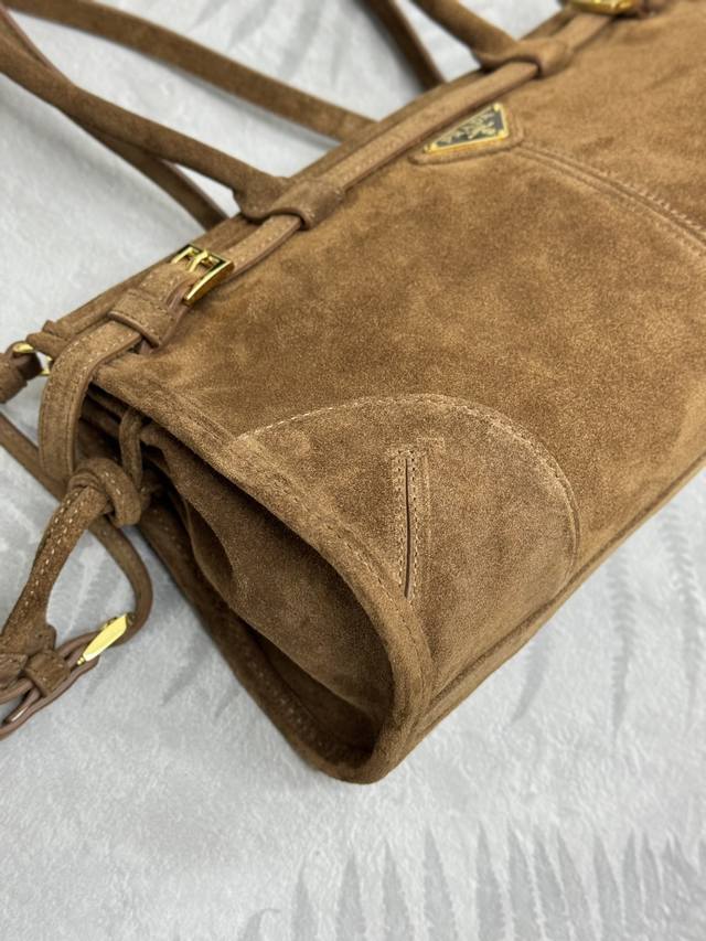 配专柜对版全套包装 独家订制 新款绒面麂皮小号Soft Lux1Ba426棕咖色到货 这款手提斜挎包采用进口磨砂皮 散发出古典气息 配有一条可拆卸调节的长肩带 方便不同场合搭配 容量空间非常大 巨巨好用 绝对是时商达人们的必备款 赶紧把这款复古格调手拎包带回家吧 长32X高15.5X底12Cm