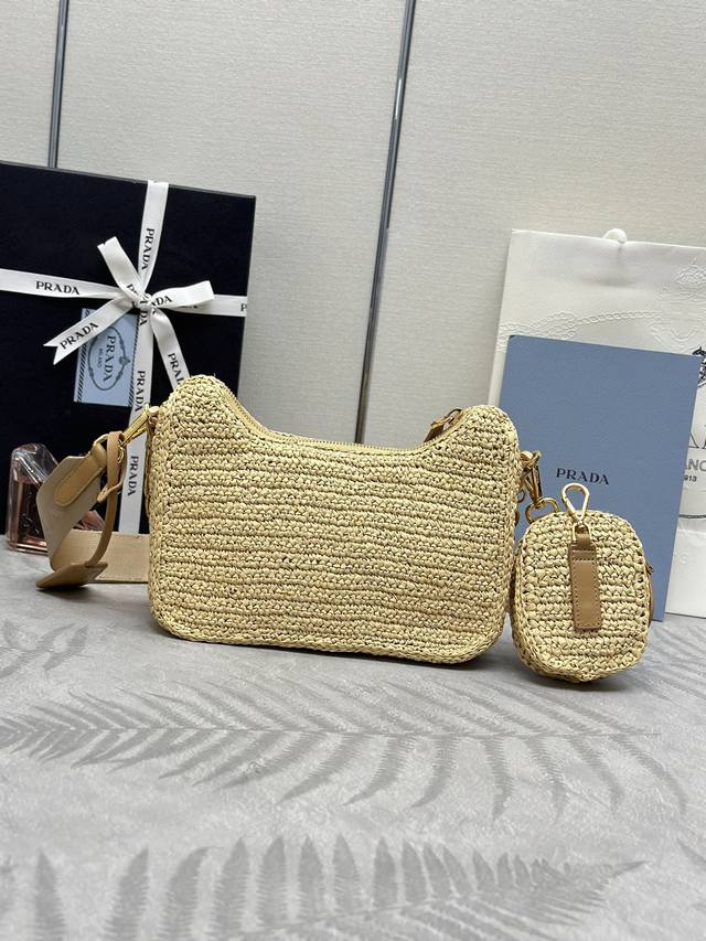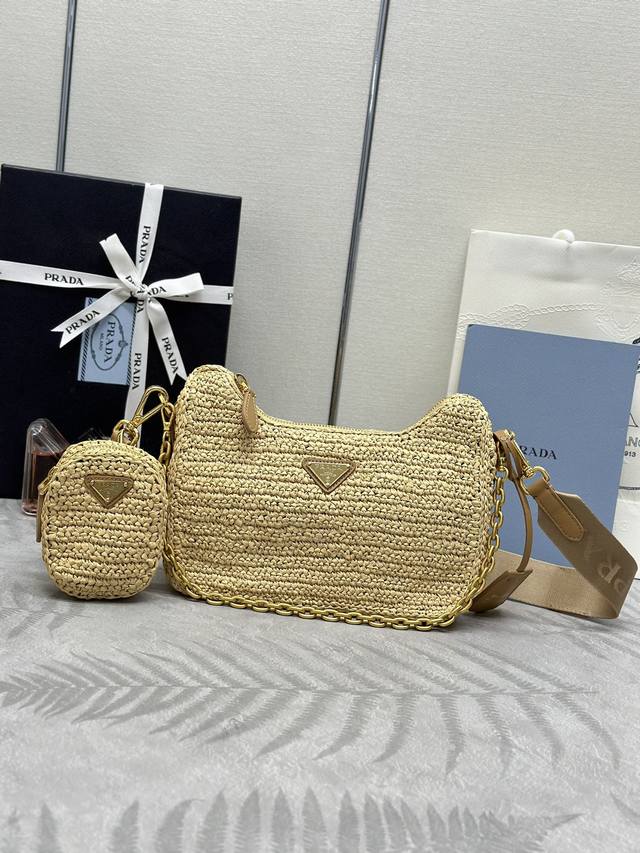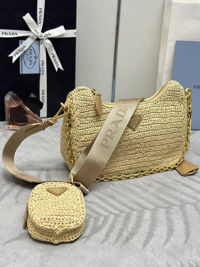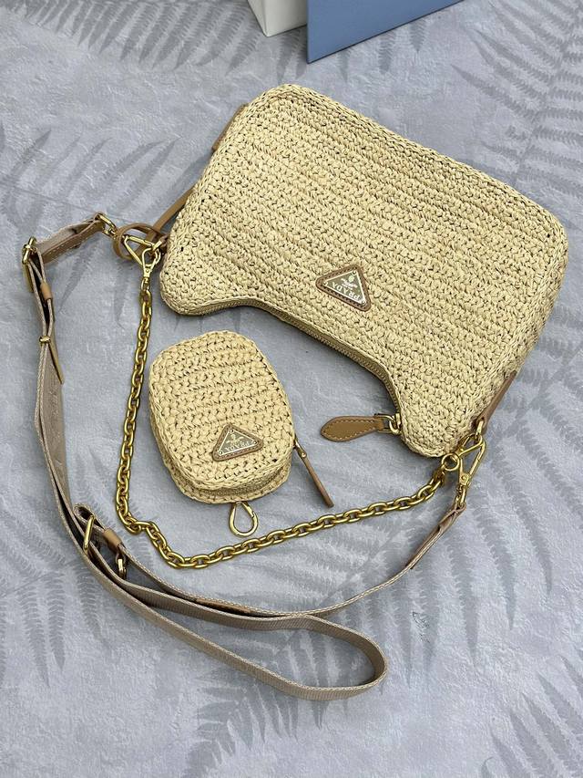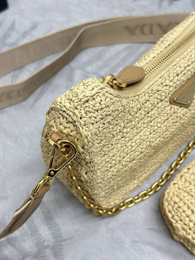 配专柜对版全套包装 独家订制 草编三合一1Bh204 这款纯手工编织三合一设计太棒一包三用这款复杂工手显得格外大气 时尚 最爱的是肩带还挂着个小挂饰 小包 上身