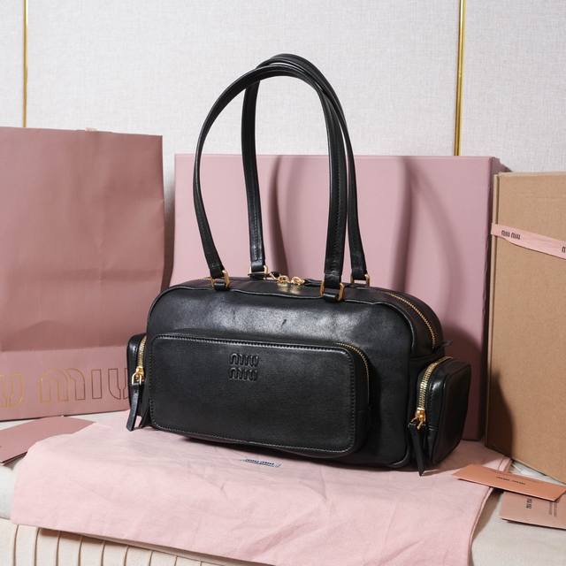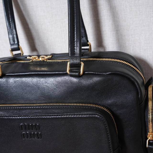 Bb175 Miu新品特色款式中古机车包 超重工制做 采用柔软水洗Nappa皮革版本进一步升华 呈现百搭复古风格 多口袋元素与精美的五金配件彰显质感与实用性 延