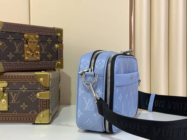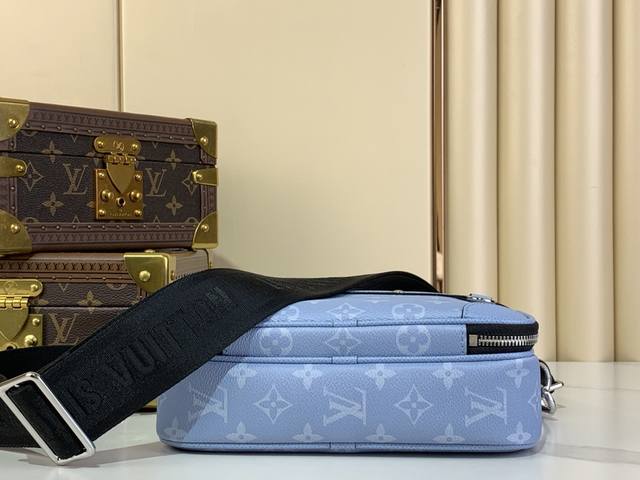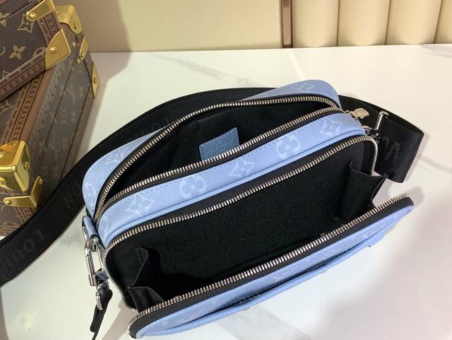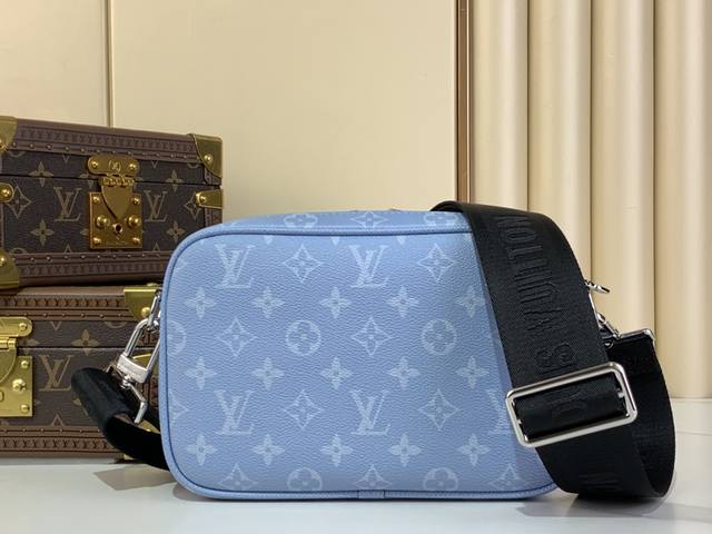 本款 Alpha 邮差包为 Taga 牛皮革和 Monogram 涂层帆布渲染明亮色调 以精巧设计为都市出行再添摩登之选 方正构型 加固包角和正面铆钉一道致意路易威登制箱传承 独立拉链隔层方便收纳日常所需