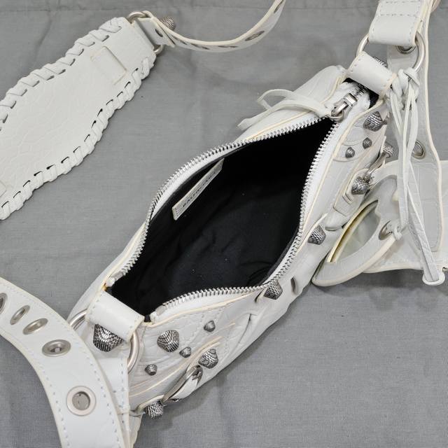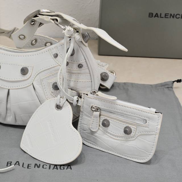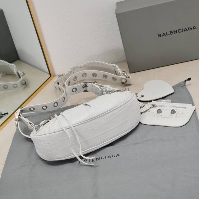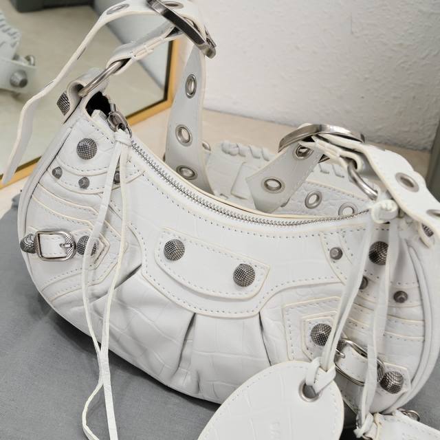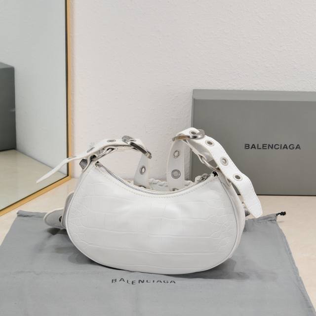升级版]鳄鱼纹小号Balenciag巴黎世家Le Cagole 半月牙腋下包 斜挎包炸街新宠 原厂正品支持验货级 时尚王炸Bb 登场啦~ 必需盘它 在传统的机车包上做了改良 可调节编织肩带附加孔眼和外挂皮革卡包 心型挂镜沿用经典机车元素 小巧精致的设计 各种背法且每个纹路设计感真的太足了 高级感满满上身超级随意大气 让我心动的包包 男女生背真的好飒 真香系列 只好先拔掉这颗草Haha皮料: 进口意大利鳄鱼纹牛皮加钻五金:进口意大利 纯铜原厂复工艺 可斜挎 可肩背 可腋下 Lg1008 1月牙包 小号 26