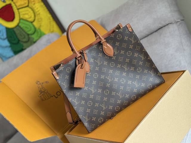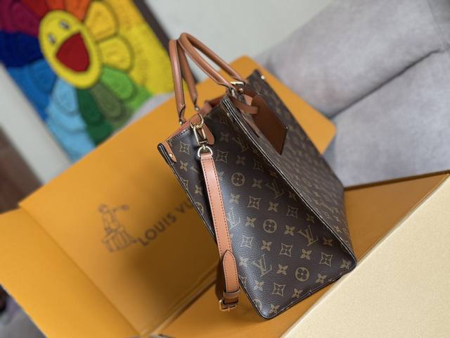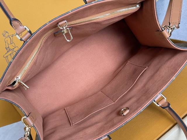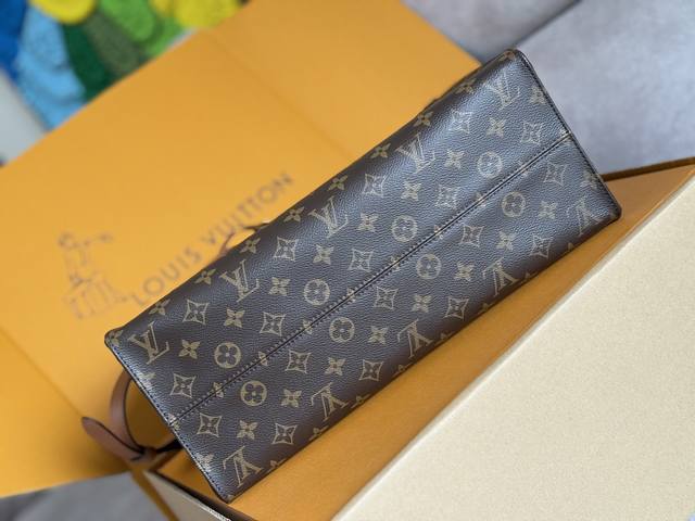 本款 Organizer 手袋出自 Onthego 系列 为 Monogram 帆布搭配皮革手柄和名牌 宽敞内里可容纳笔记本电脑和记事本 多重口袋实现有序收纳 成就都市生活良伴