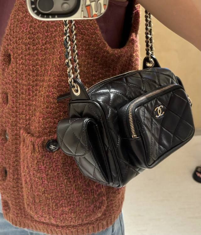 原厂皮现货24K超级实用的一款相机包 姐妹们帮忙选容量也还行有两个中口袋 很像Duma坦克包有手柄+包盖可以整个拉开放东西比较方便找东西包包也有好几种背发但是有