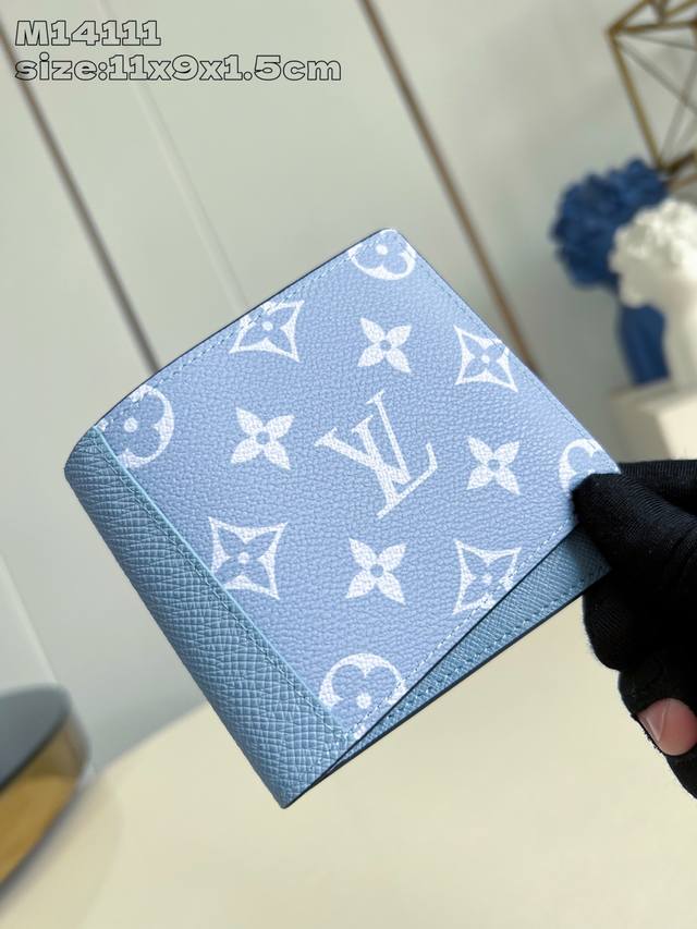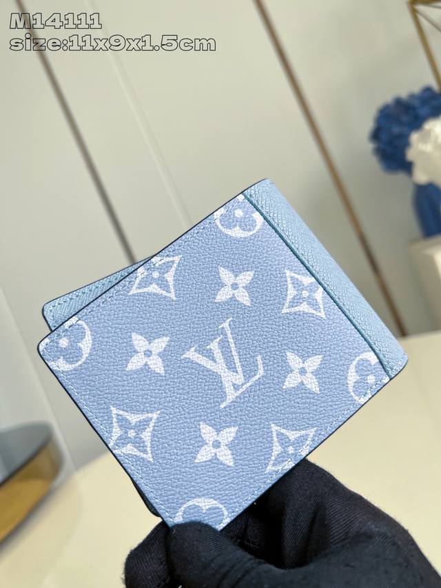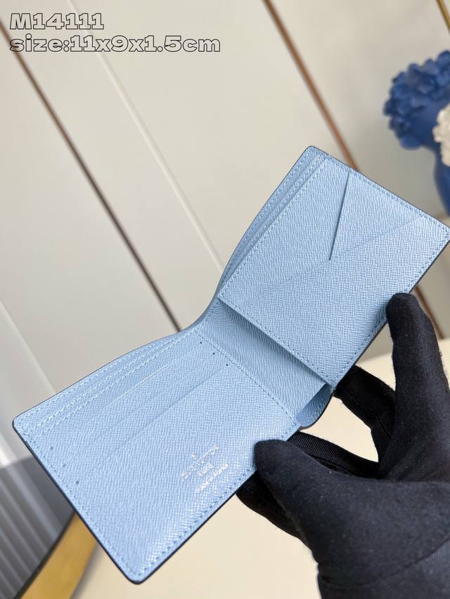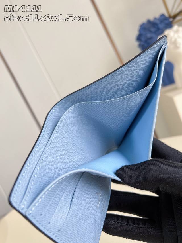 / 出厂价p 顶级原单 M14111蓝 這款尺寸小巧的Multiple錢包以同色調的Monogram帆布搭配Taga皮革 展現俐落清爽的配色 散發活潑的運動氣息 內