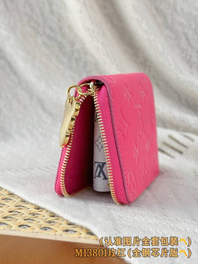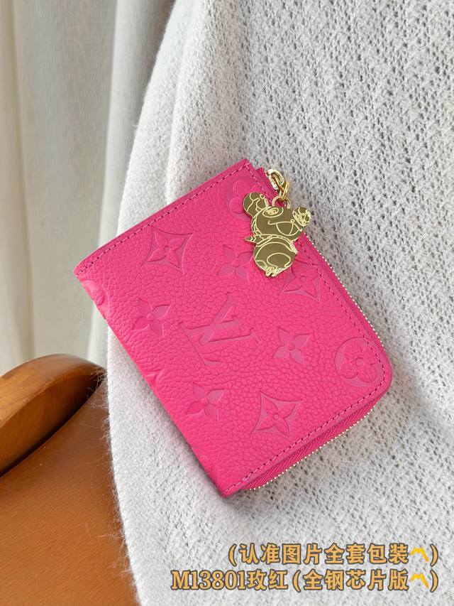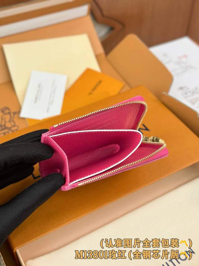 出厂价p M13801 玫红 A级全钢版 个性化定制 变码芯片 Noa 小型錢包 這款Noa小型錢包以路易威登的經典Monogram牛皮制作 採用小巧的正方形設計 並設有別具特色的L型拉鏈為 而內層更設有彩色皮革襯裡 錢包設有六個名片夾層 以及寬敞的摺疊口袋
