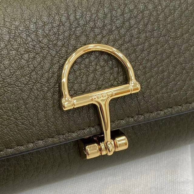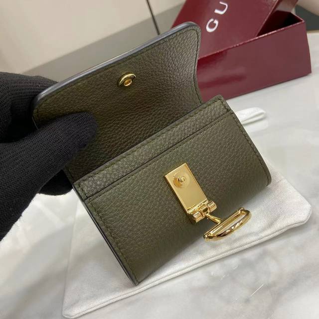 配全套原厂专柜包装 新品 Gucci延续品牌深厚传承 深化与马术本源的联结 半马衔扣图案化身为开合细节 为多款小皮件增色添彩 这款卡片夹以古驰绿色粒面牛皮革匠心打造 经典元素点缀其上