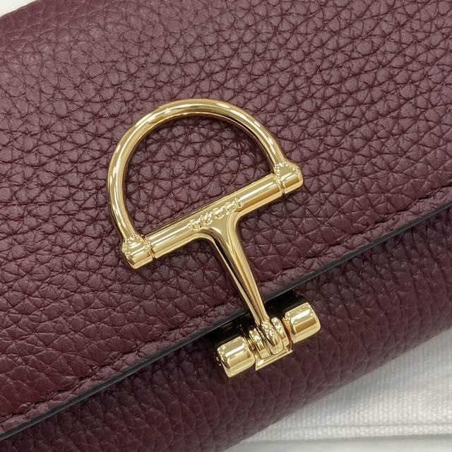 配全套原厂专柜包装 新品 Gucci延续品牌深厚传承 深化与马术本源的联结 半马衔扣图案化身为开合细节 为多款小皮件增色添彩 这款卡片夹以古驰安可拉红粒面牛皮革匠心打造 经典元素点缀其上
