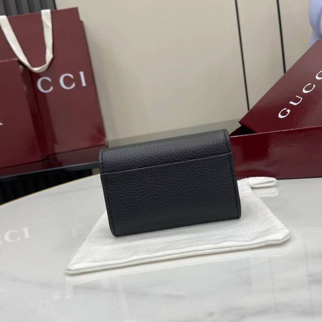 配全套原厂专柜包装 新品 Gucci延续品牌深厚传承 深化与马术本源的联结 半马衔扣图案化身为开合细节 为多款小皮件增色添彩 这款卡片夹以黑色粒面牛皮革匠心打造 经典元素点缀其上