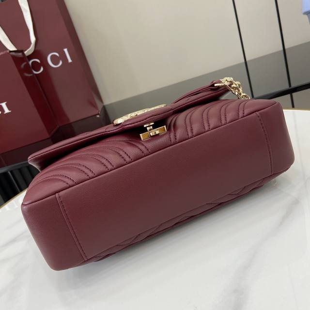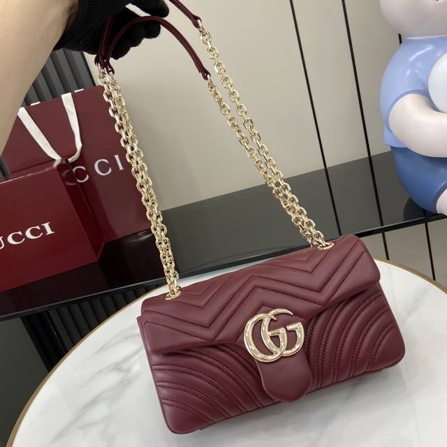 配全套原厂专柜包装 新品 品牌标志性Gg Marmont系列匠心融蕴双G造型配件和切面链式包带 甄选柔软皮革缔就线条柔和的包型 简约利落的后袋令中号和大号包袋更具实用性