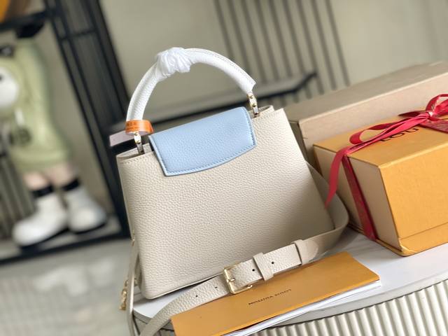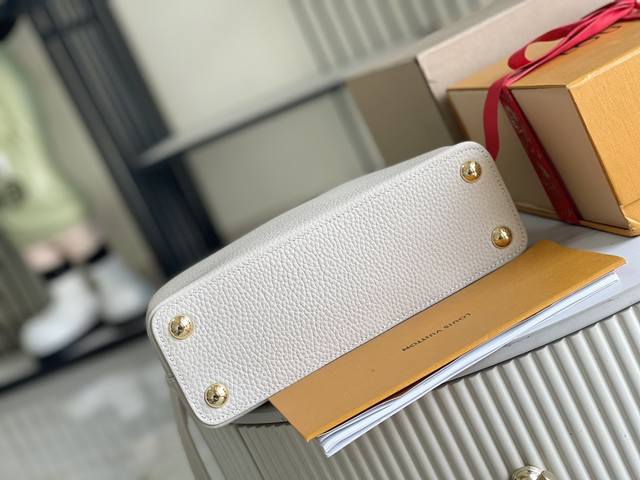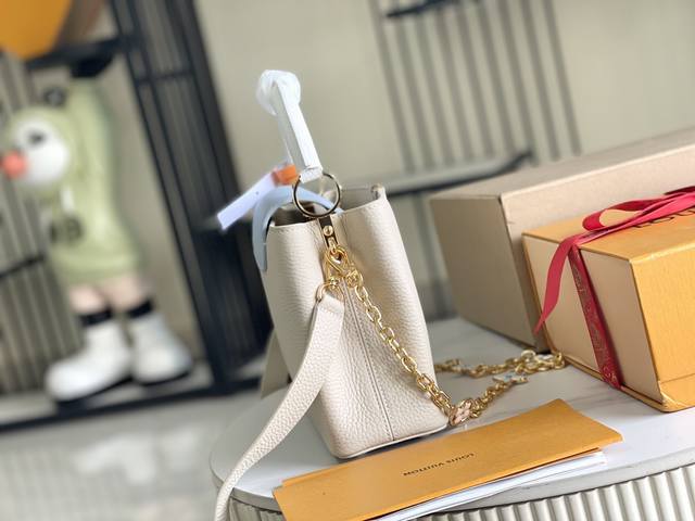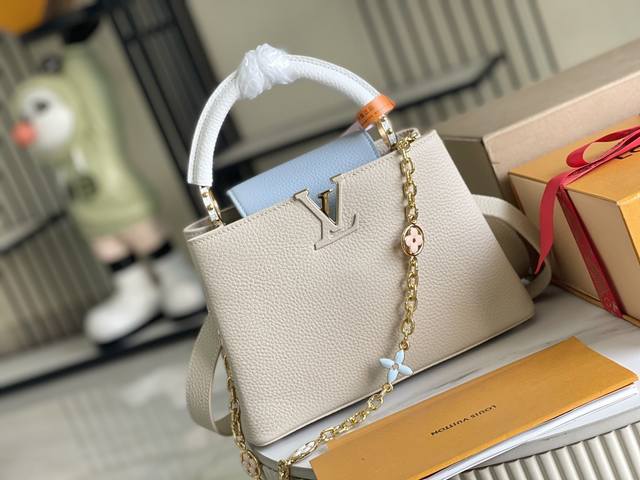 本款 Capucines 迷你手袋取材 Taurillon 皮革 以珐琅 Monogram 花簇和耀目链环构筑花卉链条 每只花卉均通过手工抛光和上釉显色 彰显品牌精湛匠艺 尺寸 27 X 18 X 9 厘米