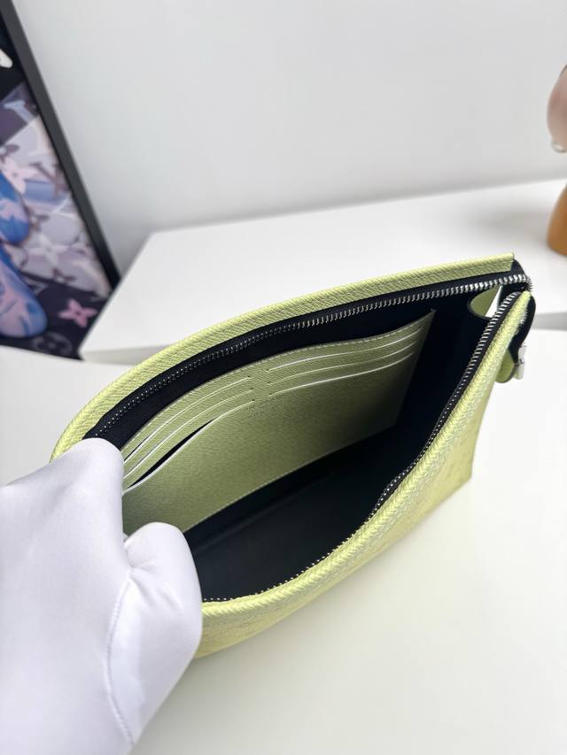 / 海外原单M61692浅黄独家实拍 此款小巧而时髦pochette Voyage中号手包 功能多样 既可作为旅行袋放于包中 亦可持于手中 展现时尚风格 宽敞的包内