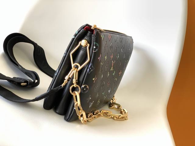 顶级原单 独家实拍 M21209 M21353 本款 Coussin 小号手袋采用 Monogram 压纹羊皮革 将花卉图案巧妙融于 Lv 字母和 Monogram 花卉之中 粗犷链条方便肩背 系上可调节织物宽肩带即可轻松斜挎 尺寸 26 X 20 X 12 厘米 长度 X 高 X 宽