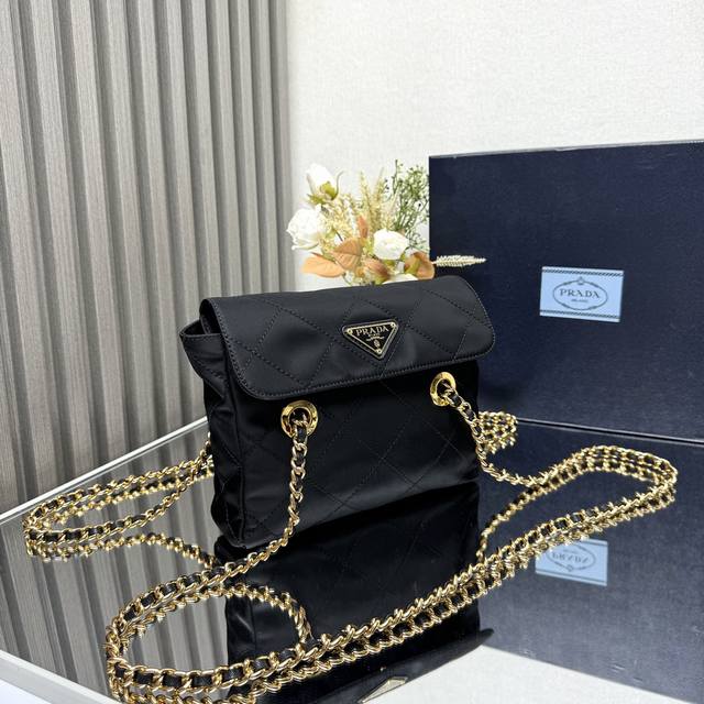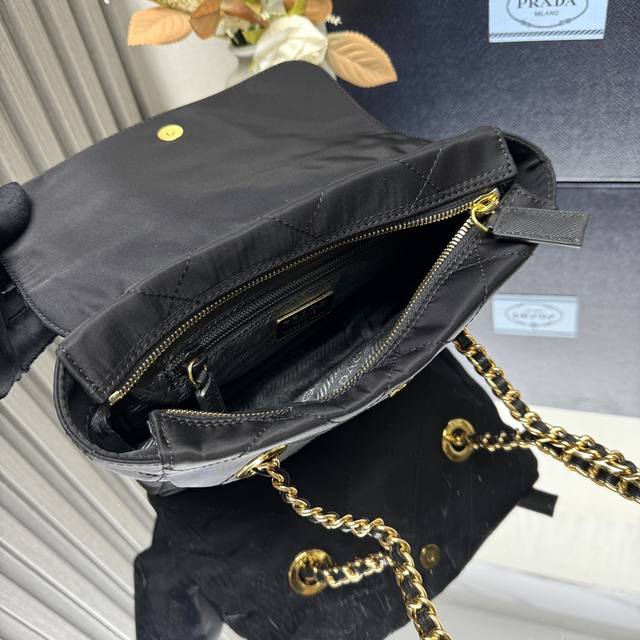 顶级原单 中古翻盖款1Bd630这款Vintage中古链条菱格流浪包设计太棒了纯手工尼龙菱格设计 可单肩+斜跨+流浪背法 进口黑金链条搭配真的是Vintage永远的情节简约大气 容量非常大上身特别潮 百搭又时髦 不管休闲 正式 全是稳稳气质 赶紧入手吧太爱这款中古流浪包尺寸 长22X高18X底5Cm