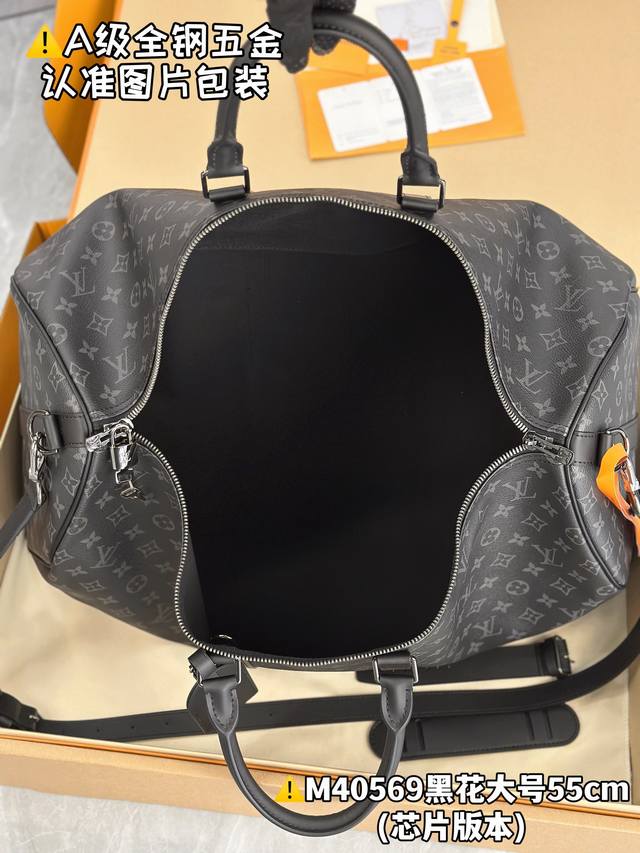 keepall 55 旅行袋 由全新标志性 Monogram Eclipse 帆布裁制而成 自 1930 年以来 Keepall 系列包袋陪伴着一代又一代的旅行者云游四海 此款新版旅行袋配有多个提握舒适的皮革手柄 一条适用于闲适斜挎的包带以及一个闪亮的挂锁 短途旅行的伴侣