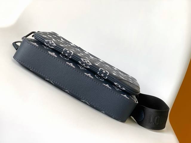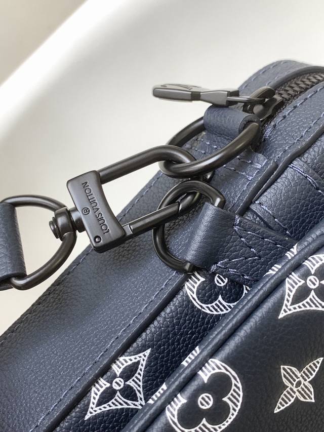 顶级原单 独家实拍 M24753 蓝 M24754米白M46603灰色 M46602黑色 M46604蓝 本款 Trio 邮差包取材 Monogram 压纹牛皮革 拉链前袋和肩带处的小号零钱包均可拆卸 与主隔层共同丰富功能设计 可拆卸并调节的提花织物肩带标注品牌标识 成就舒适肩背和斜挎体验 尺寸 25 18.5 7Cm