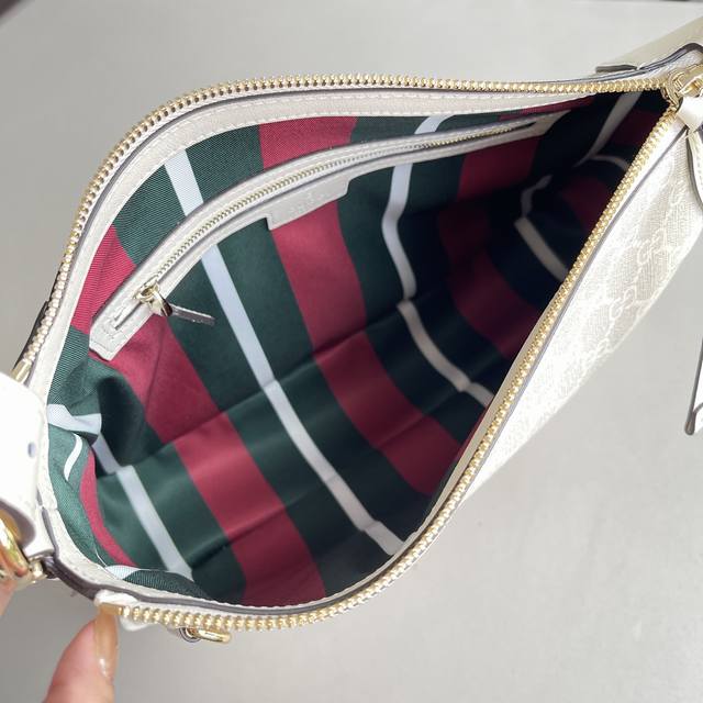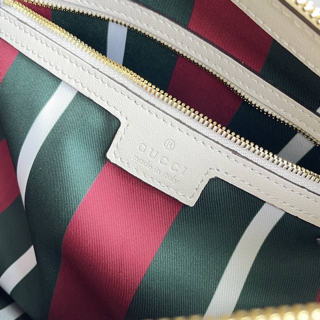 米色和深棕色全新Gg字母图案涂层织物 黑色皮革滚边 饰对比色缝线 红绿织带棉布衬里