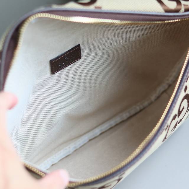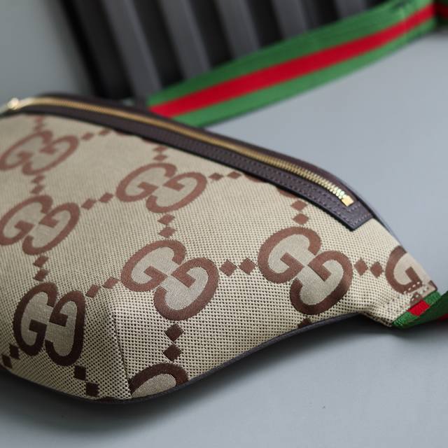 顶级原单 经典Gg图案的超大号版本最初在 Aria-时尚咏叹调 系列中惊艳亮相 本季在标志性旅行箱包单品中再度回归 以高调姿态彰显品牌标识魅力 这款腰包饰有品牌经典红绿织带 以时尚格调演绎70年代的Gucci典藏腰带搭扣元素 驼色和乌木色超级双G帆布 棕色皮革滚边