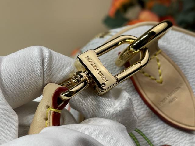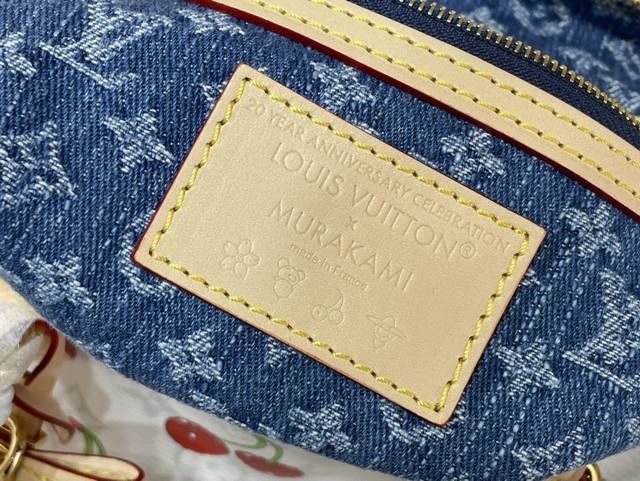 邂逅路易威登 X 村上隆复刻系列的个性美学 Monogram 涂层帆布本次选择素净色彩 烘托日本艺术家笔下绚烂热烈的樱桃图案 丹宁布构筑内层 Toron 顶部手柄和可拆卸 Toron 肩带均取材皮革 蝴蝶结形状钥匙包丰富细节