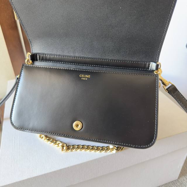 翻盖配以装饰性Triomphe 锁扣 按扣开合 内设一个主隔层 一个扁平口袋 拆卸链条 和调节皮肩带 . 多种背法 容量的话日常出行必备的手机 口红 钥匙 轻轻松松装下 三合一设计 果然是香饽饽 完美满足了所有场合需求