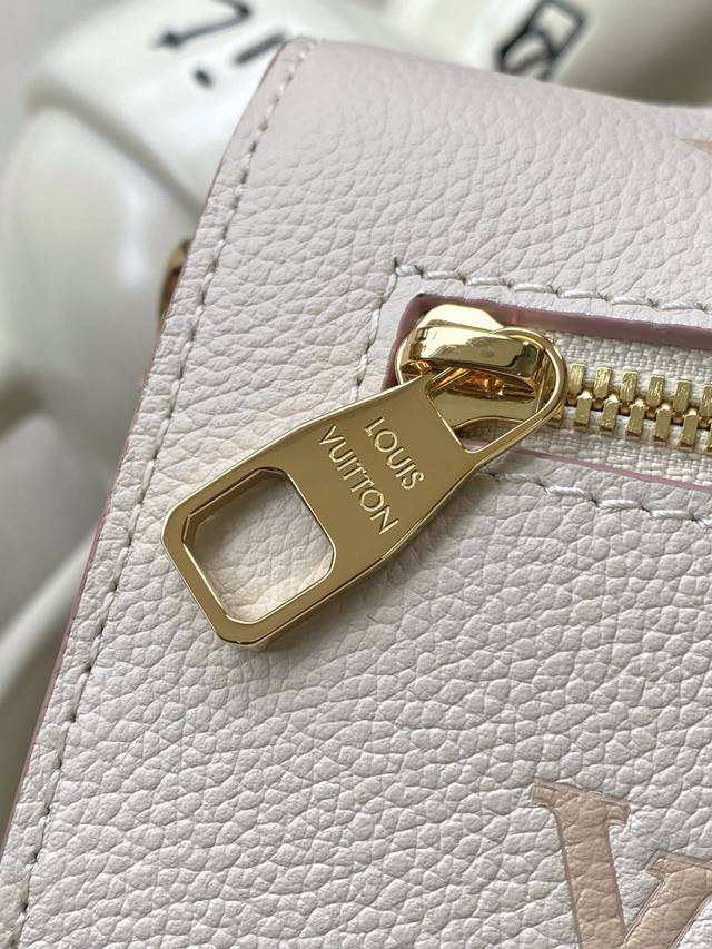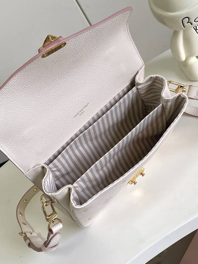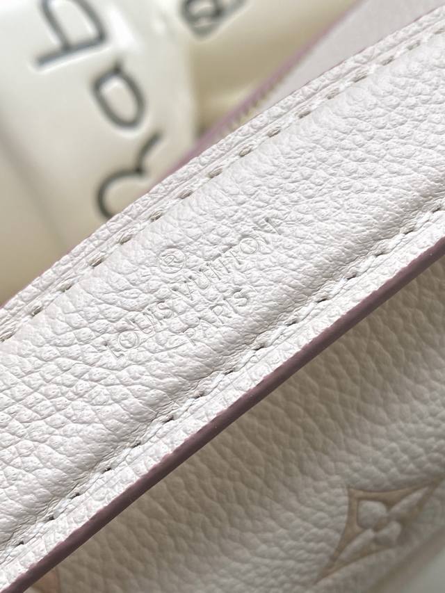 海原外单 独实家拍 163C01动态芯片 半钢五金M14977 奶白色提花邮差包 小巧的造型散发出优雅的气息 采用经典Monogram Empreinte皮革材质制作而成 拥有多个实用的口袋和隔层 25 X19X 9 Cm