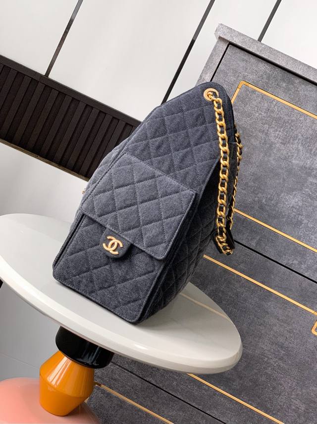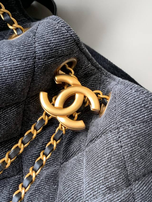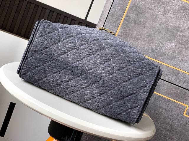 水洗牛仔布材质 风格粗矿而不失优雅 手袋中间配上金属双C Logo扣 设计随性更减龄