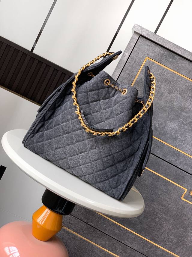 敞口 抽绳 口袋 金链点缀 独特的造型设计
