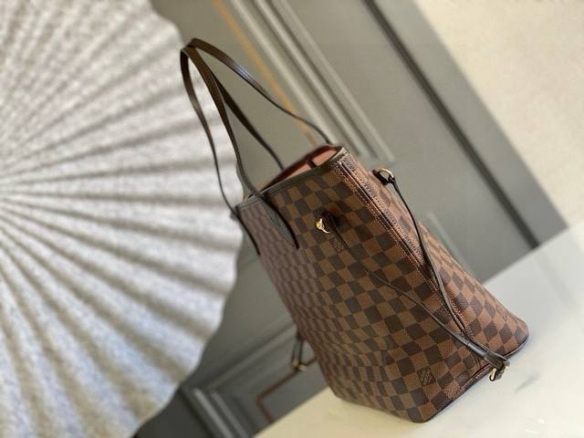 neverfull 中号手袋极具传奇色彩的 Neverfull 手袋总是能够满足您对手提包的各种需要 容量大却不显笨重 挺括而手感柔软 居家出行皆宜 束紧侧边系带 立刻变身为一款时尚的都市手袋 松开系带 又变成一款别致而实用的手提包 细长的皮革手柄既宜肩背 亦可挽拎于臂间 此处显示的此款是以 Damier Eb Ne 帆布制成