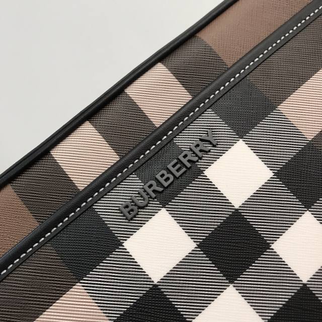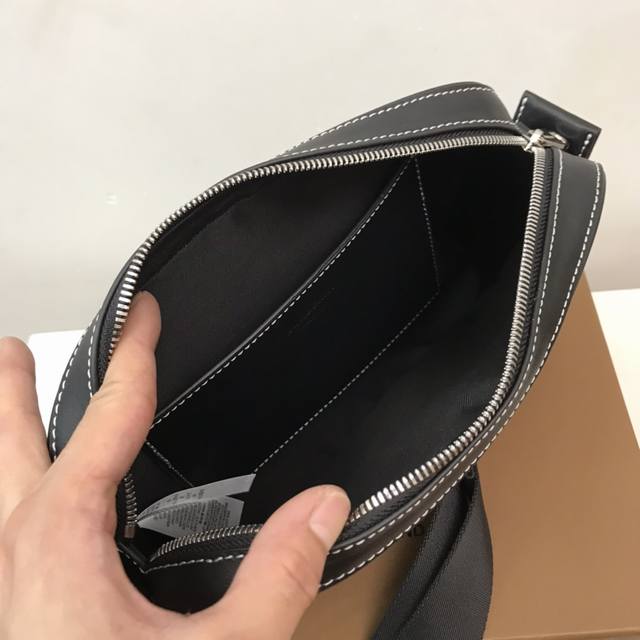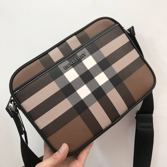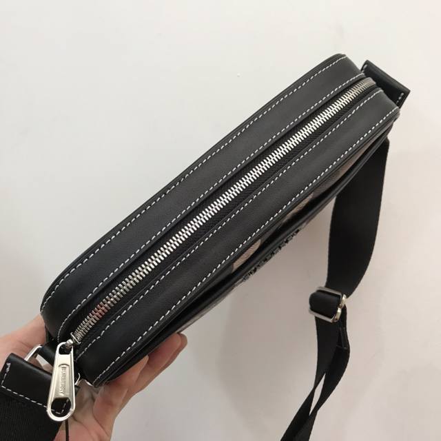 精巧的斜背包 装饰 Bur 格纹和光滑皮革边饰 点缀品牌徽标设计 搭配可调式网纹背带