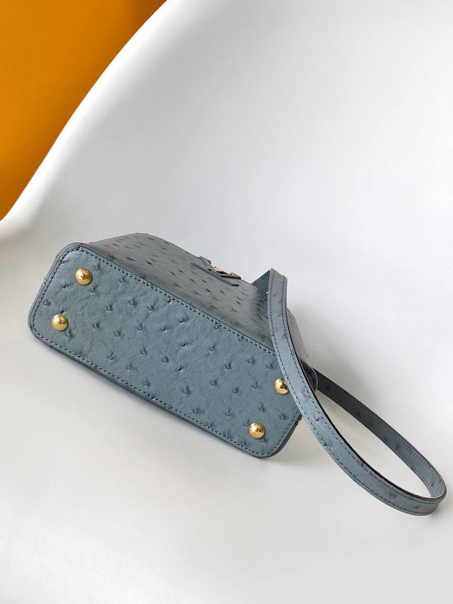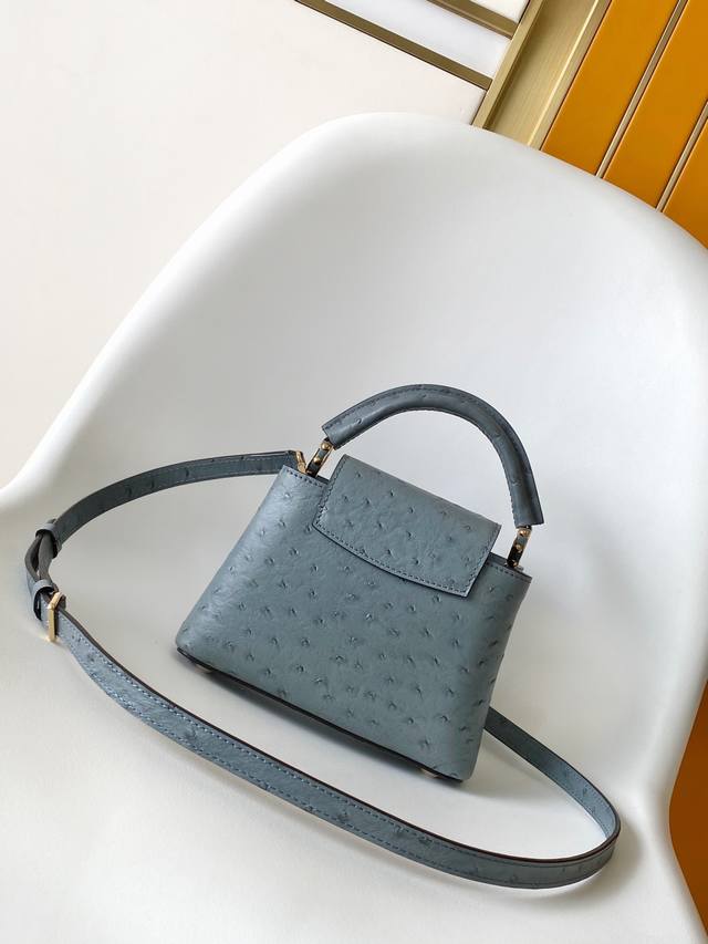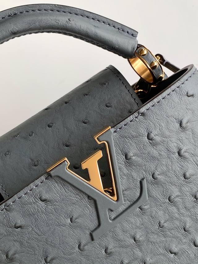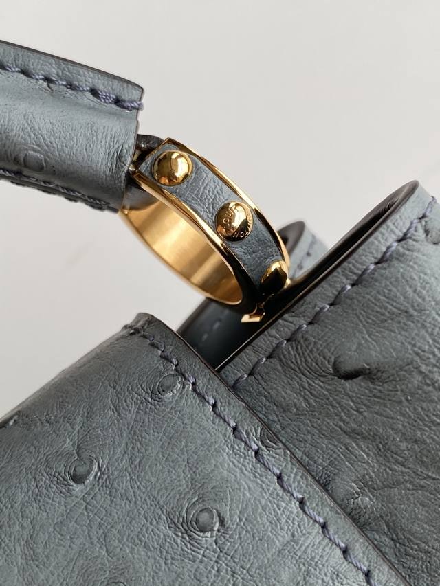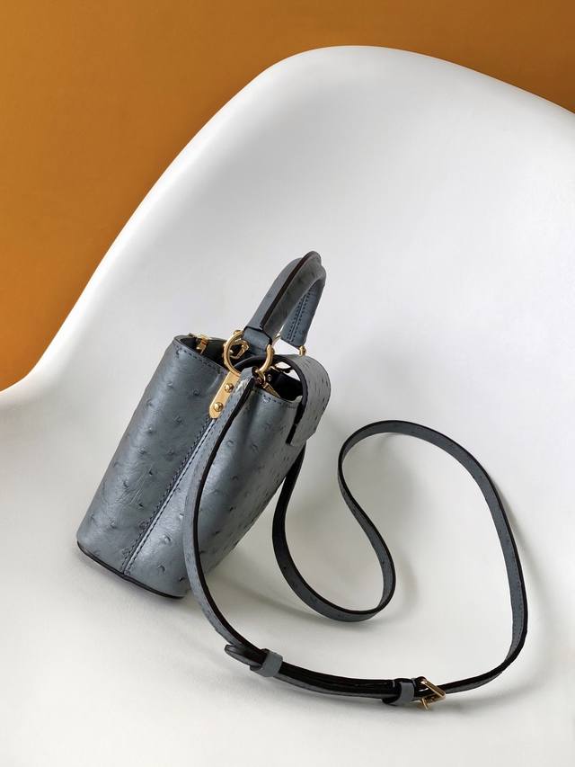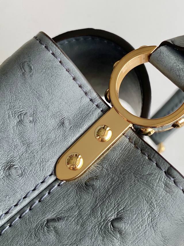 N87312 鸵鸟纹 特级原厂皮 动态芯片 本款 Capucines Bb 手袋出自 Trilogy 系列 以 Taurillon 鸵鸟皮革和耀目金属件传递典雅