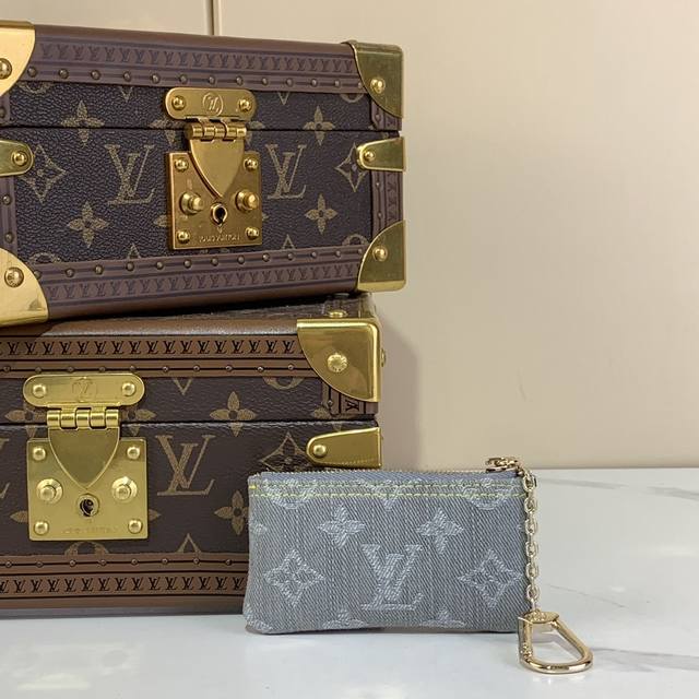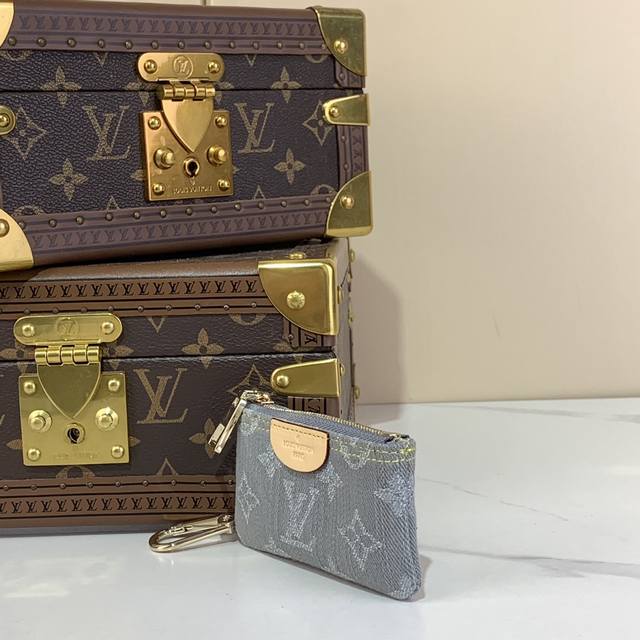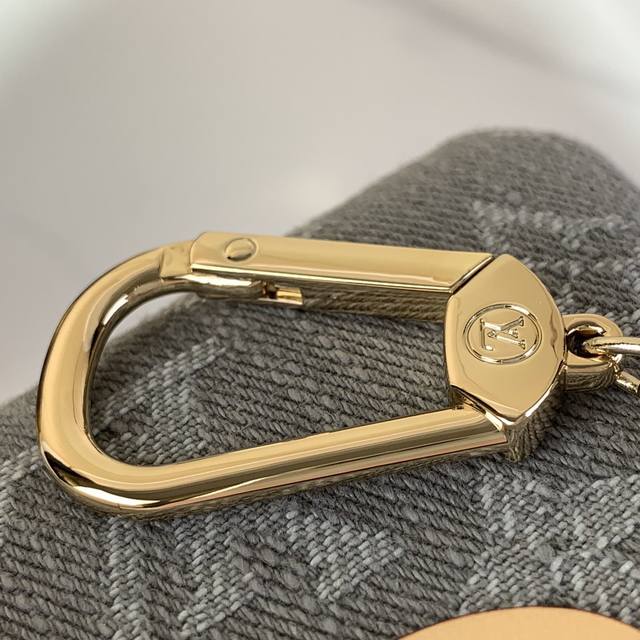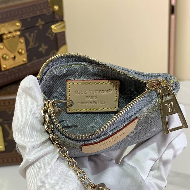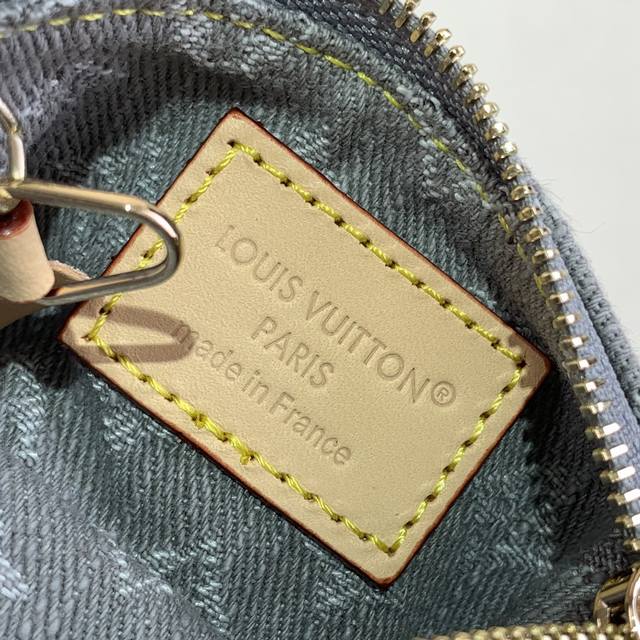 在Maison的 Monogram Denim Ms系列中登场的 现代且实用的 pochettekre 完成了适合接下来季节的水洗粉色 精致的金色钥匙圈和链子衬托了这个紧凑的单品 链条附带可以简单安装在更大的配件和皮带环上的钩子
