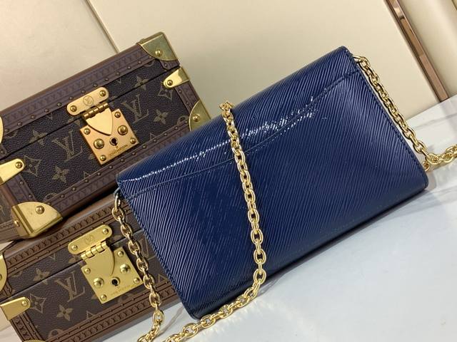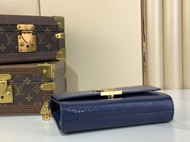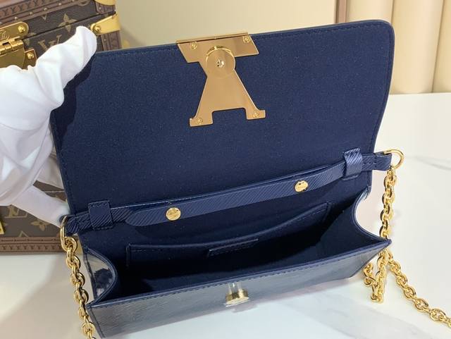 顶级原厂 pochette Louise链条包 M13165 23756 深蓝色 水波纹 镜面漆皮