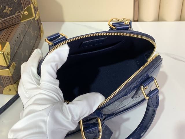 顶级原厂 Alma Bb 手袋 M91606 深蓝色 漆皮金扣