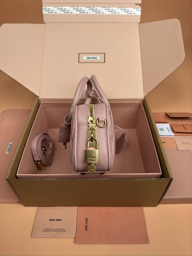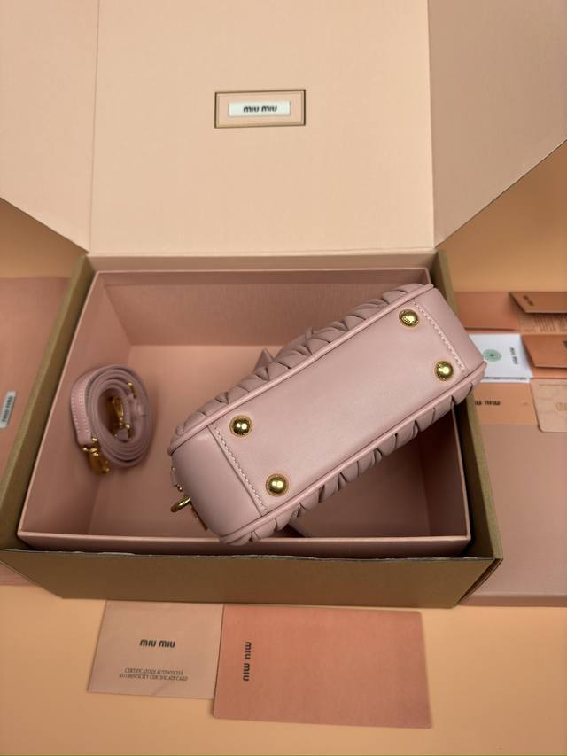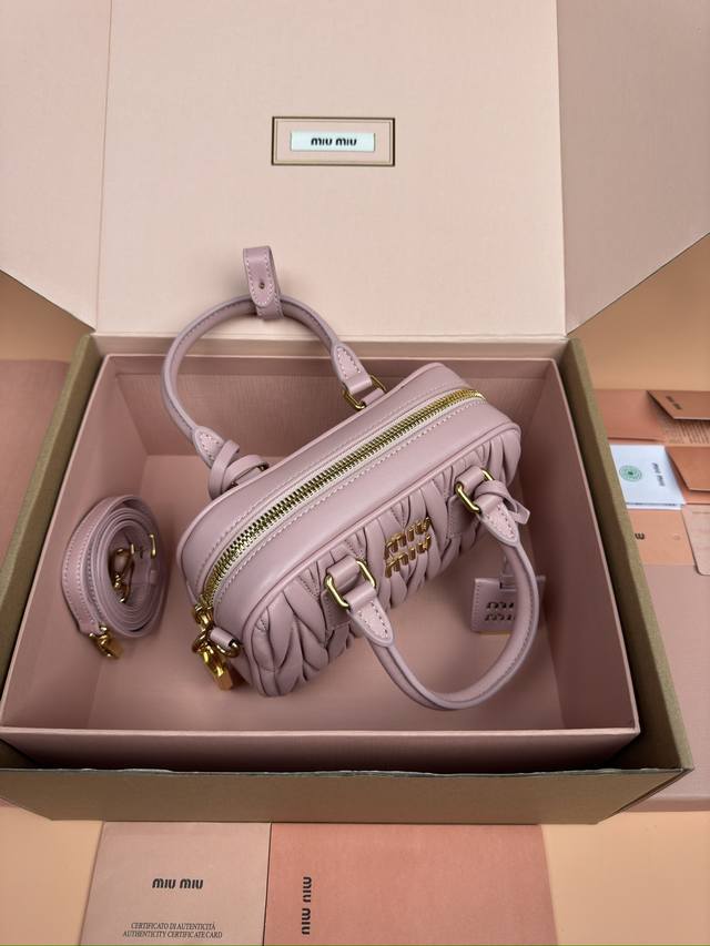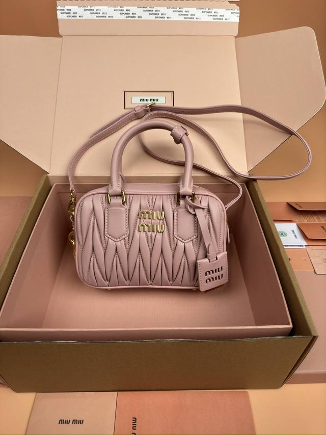 特级五金原厂皮 Arcadie Matelasse羊皮革小号 19Cm 保龄球手提包 斜挎包 浅粉色羊皮