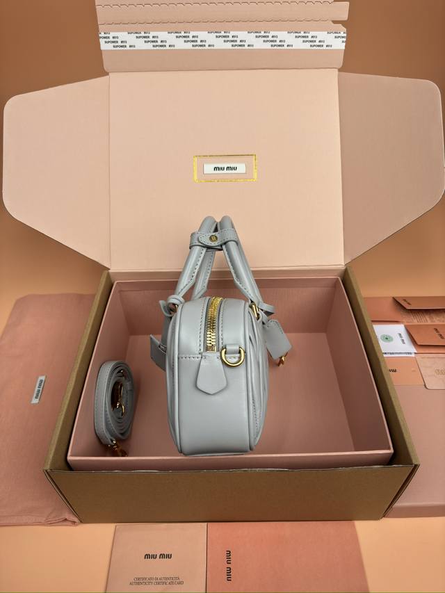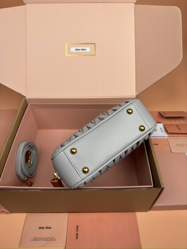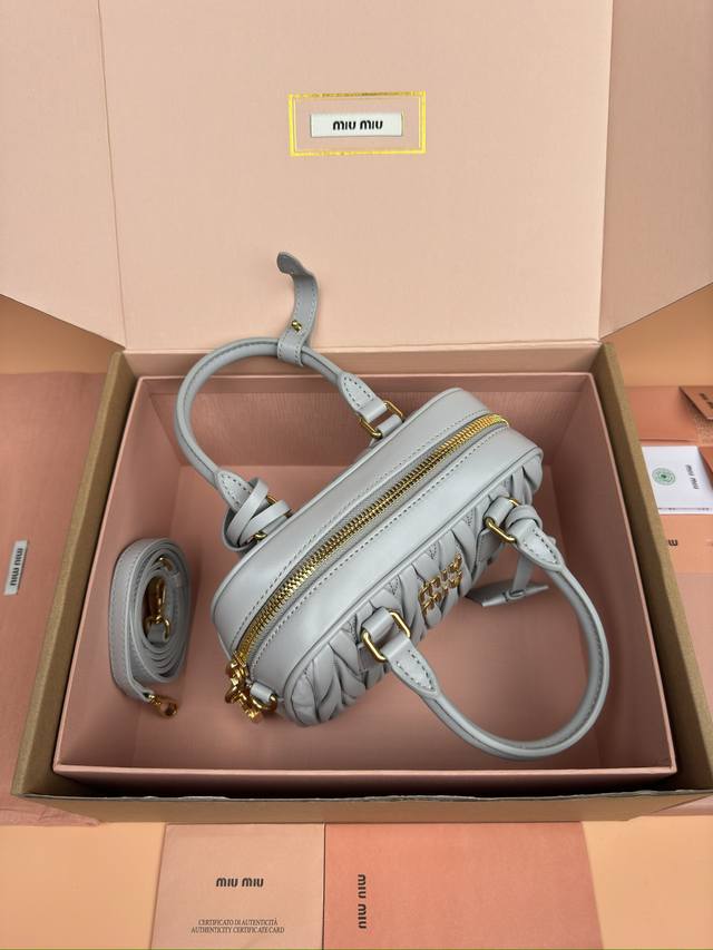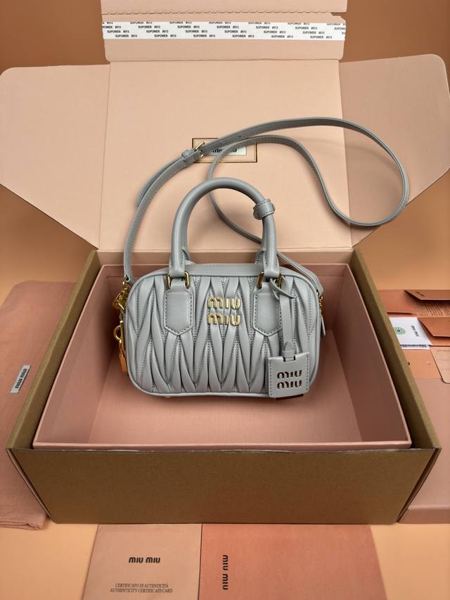 特级五金原厂皮 Arcadie Matelasse羊皮革小号 19Cm 保龄球手提包 斜挎包 灰蓝色羊皮