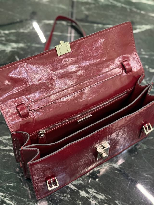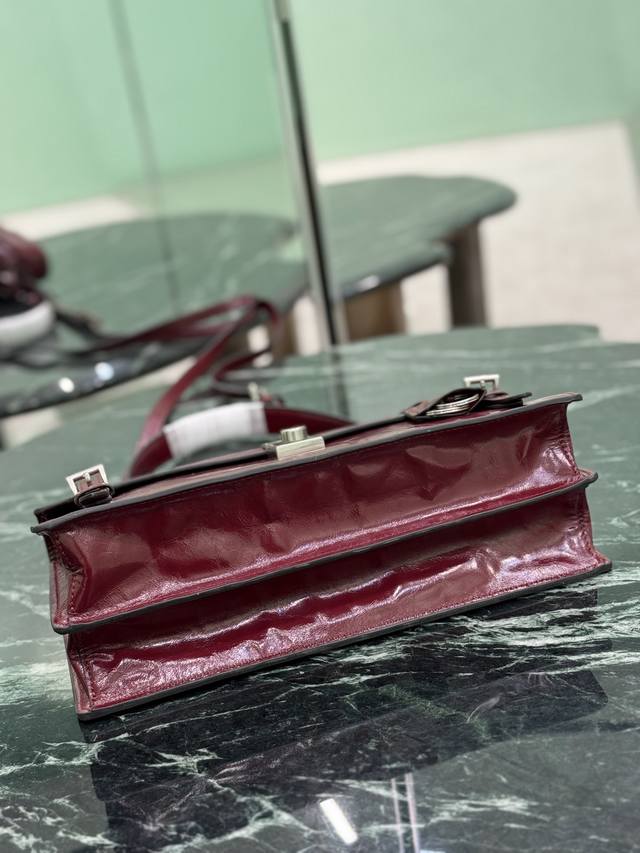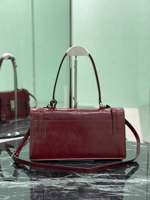 这款皮革手袋灵感源自挺括正式的公文包 质感细腻亮泽 以全新态度重释经典办公风格廓形 采用精致柔和细节设计 为包袋的经典造型更添温柔和百搭魅力 经典竖向锁扣装点细节 搭配长手提柄 可挎肩背携 更加实用