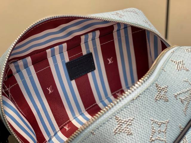 出厂价p 顶级原单 M14839蓝色 洗漱包手拿包 当季新款 Locker Dopp Kit 盥洗袋 本款 Locker Dopp Kit 盥洗袋取材 pharrell Williams 设计的 Monogram Heritage 涂层帆布 为 Monogram 图案融入原版 Damier 格纹的纵横肌理 主隔层和内贴袋彰显功能考量 内衬点缀活力条纹 13 X 12 X 23 厘米