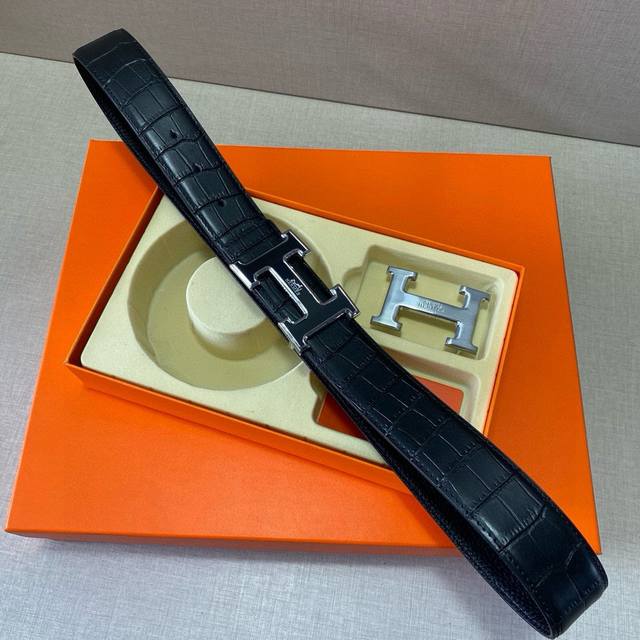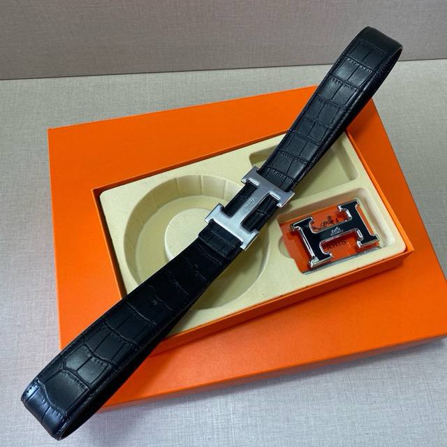 双扣皮带 头层皮质带身搭配3.8Cm仿铜扣头