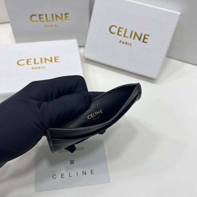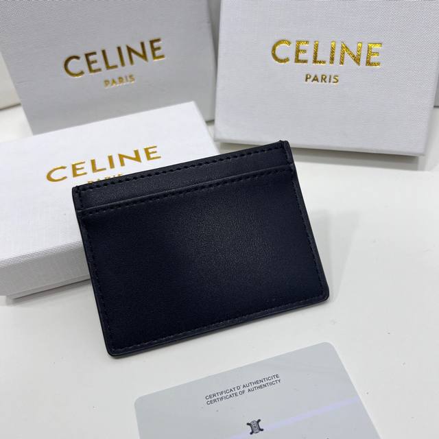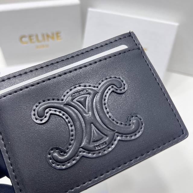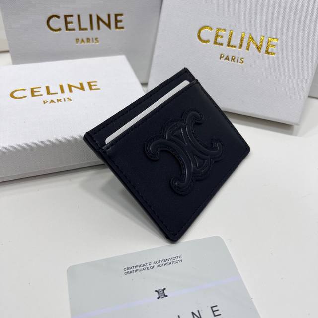 Celine新款卡包,Triomphe名片包,经典花纹大面内配平纹超纤,金色饰面Triomphe金属按扣开合,1个加厚主隔层,3个内侧卡槽。...