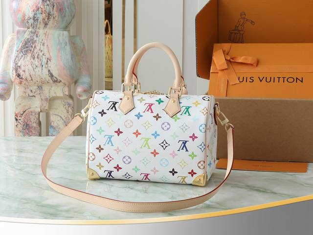 / 顶级原单 独家实拍 M13085白彩 Speedy枕头包 本款 Speedy Bandouli Re 25 手袋为经典 Monogram 图案渲染日本艺术家村上