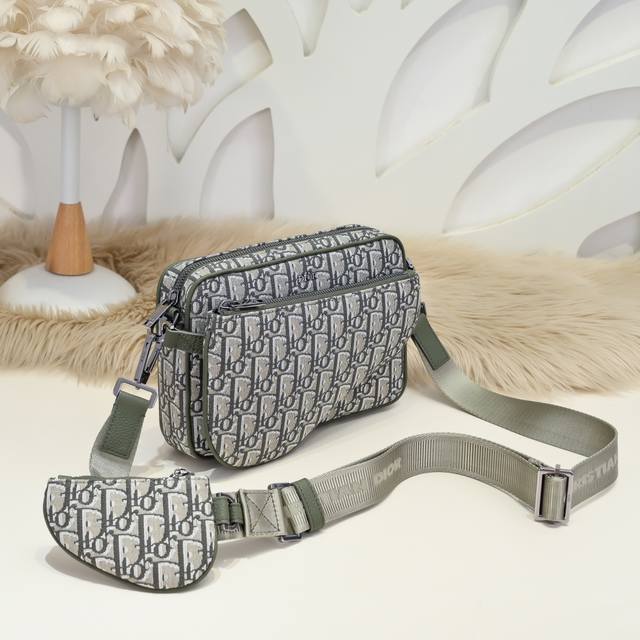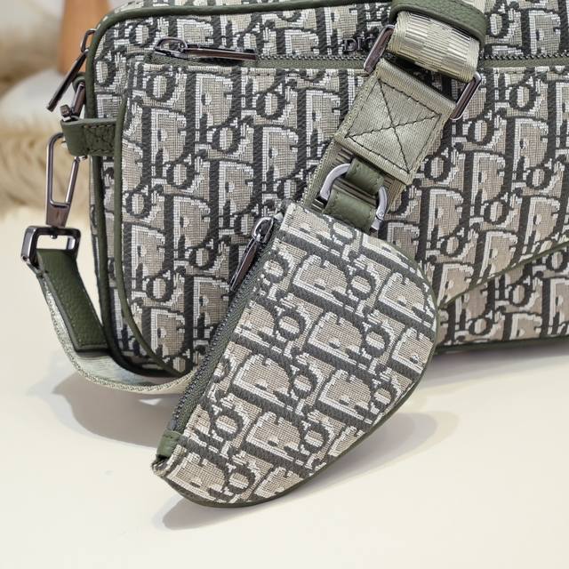dior-迪奥专柜最新款斜挎包 单肩包官网同步 卡其色 这款马鞍三件套手袋采用卡其色Oblique 印花面料精心制作 醒目百搭 三合一款式 设有一个主拉链隔层