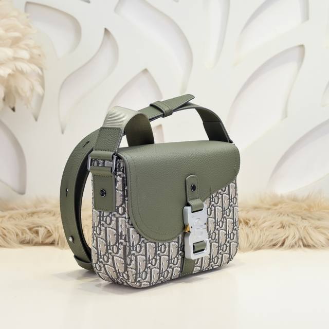 dior-迪奥专柜最新款信使包 斜挎包官网同步 卡其色配布款 采用卡其色Oblique 印花面料配粒面小牛皮精心制作 饰以对比鲜明的缉面线 搭配彰显马鞍风格审美的翻盖 点缀以铝扣提升格调 搭配可调节的皮革和Christian Dior 提花肩带 可肩背可斜挎 迷你款式 精巧时尚 款式新颖 独特魅力 百搭休闲实用尺寸 23.18.6Cm