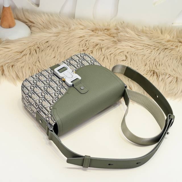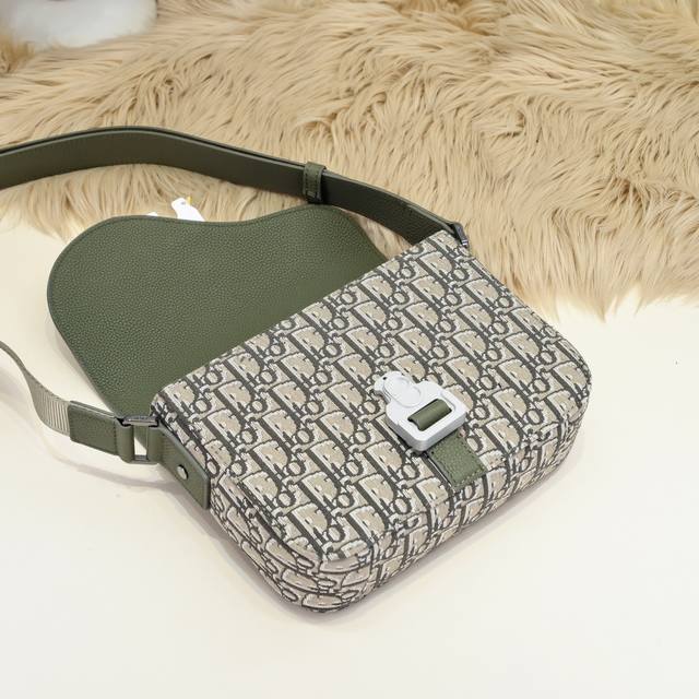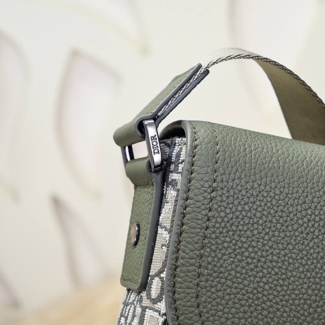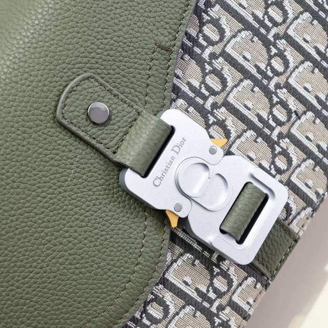 dior-迪奥专柜最新款信使包 斜挎包官网同步 卡其色配布款 采用卡其色Oblique 印花面料配粒面小牛皮精心制作 饰以对比鲜明的缉面线 搭配彰显马鞍风格审美