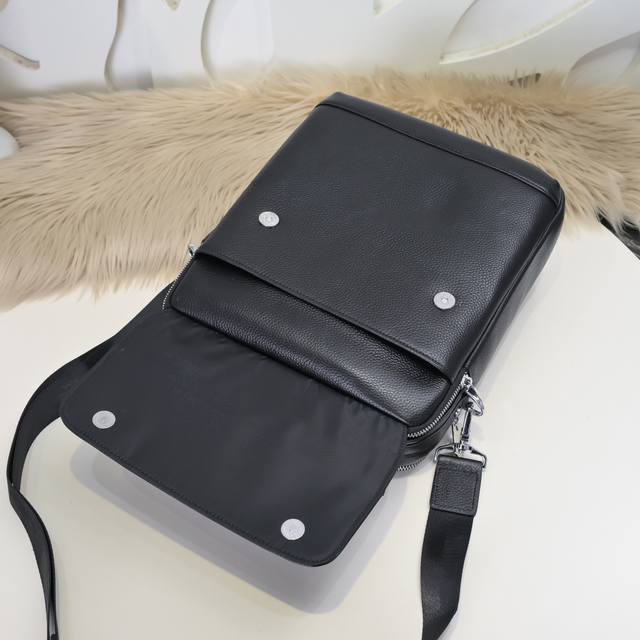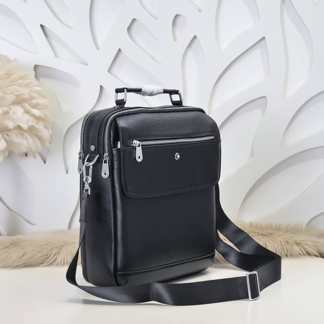万宝龙-最新款男士手提包 斜挎包采用头层牛皮 皮质柔软 手感超赞 独特设计足以彰显其奢华感 细节品质毋庸置疑 高端大气上档次 百搭单品尺寸 32.27.12Cm
