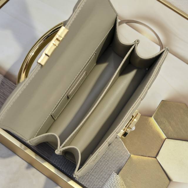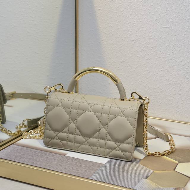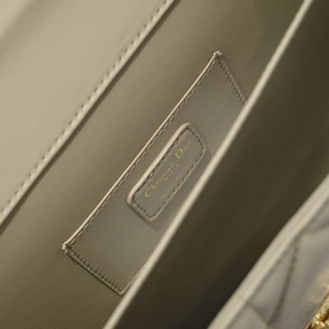 以优雅时尚的美学风格开启 Dior 的全新系列 以超大藤格纹缉面线 硬挺的复古金色饰面金属顶部手柄镌刻以