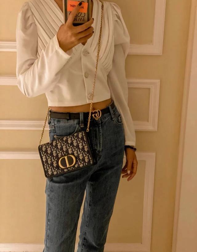 配盒子 原版对版 Di.Or 30Montaigne 腰包Woc二合一 老花蓝