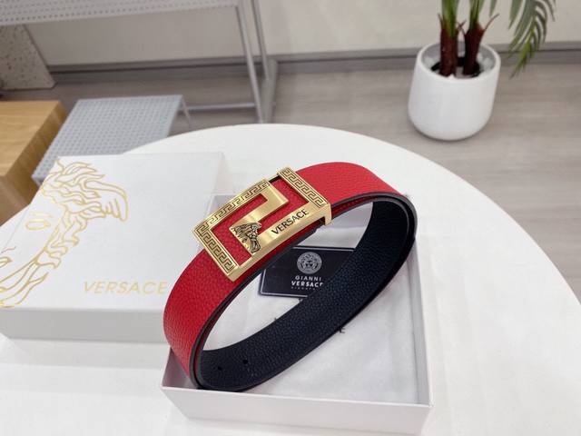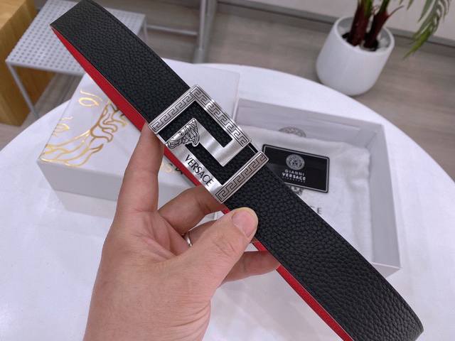 全套包装范思哲 年新款 宽度3.8Cm 原厂手掌纹小牛皮 双面设计 一面黑色一面红色 提倡多用性 性价比 皮质柔软 专卖店常青款式 型男必备款式 扣头 正品扣