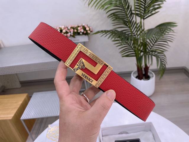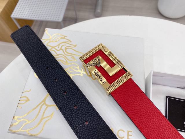 宽度3.5Cm Versace 范思哲 两面手掌纹 此款柔软的皮带饰有一个几何形状的希腊回纹别扣,既时尚又优雅