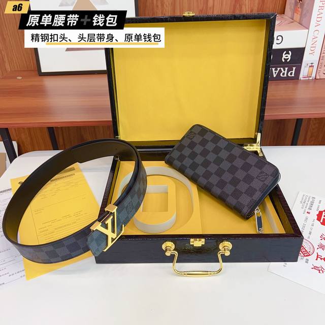 / 最新独家款 腰带钱包2件套路易L家 腰带采用原版皮牛皮带身 带宽3.8Cm 扣头采用原版精钢五金扣头 原版钱包原版复刻 独家定制2件套图片木盒高端包装 高端大气