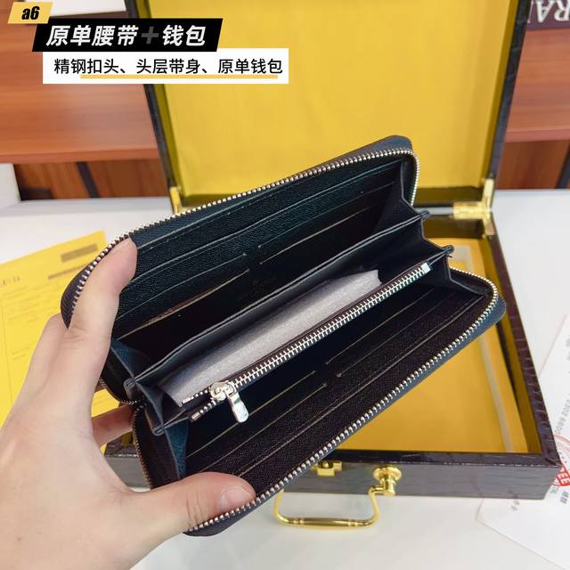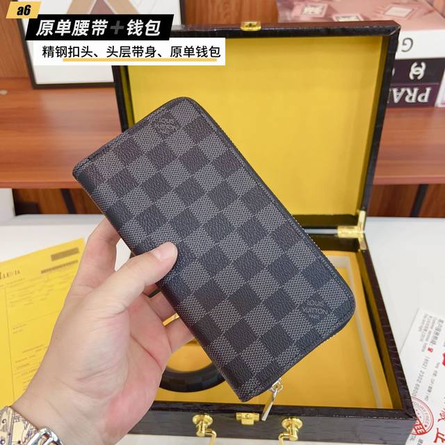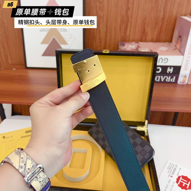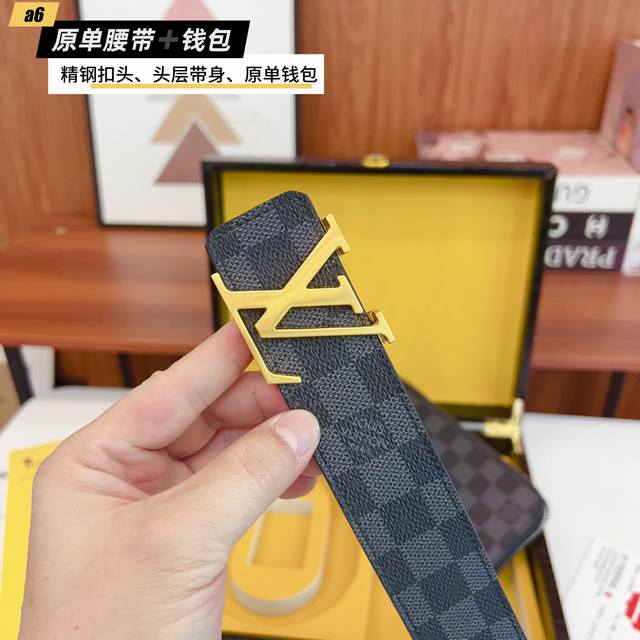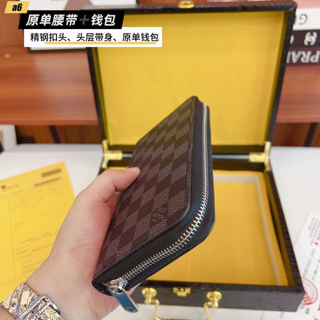 最新独家款 腰带钱包2件套路易L家 腰带采用原版皮牛皮带身 带宽3.8Cm 扣头采用原版精钢五金扣头 原版钱包原版复刻 独家定制2件套图片木盒高端包装 高端大气